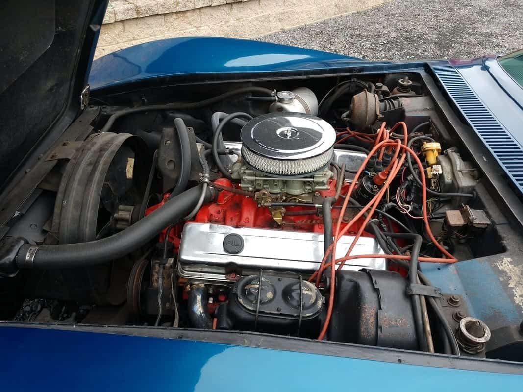 350, numbers matching block goes with the corvette, four speed manual transmission, power steering, power brakes, L88 hood, hooker header side pipes, blue interior, crank windows, AM/FM/Cassette, and much more.