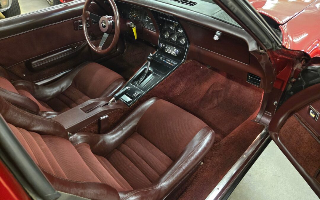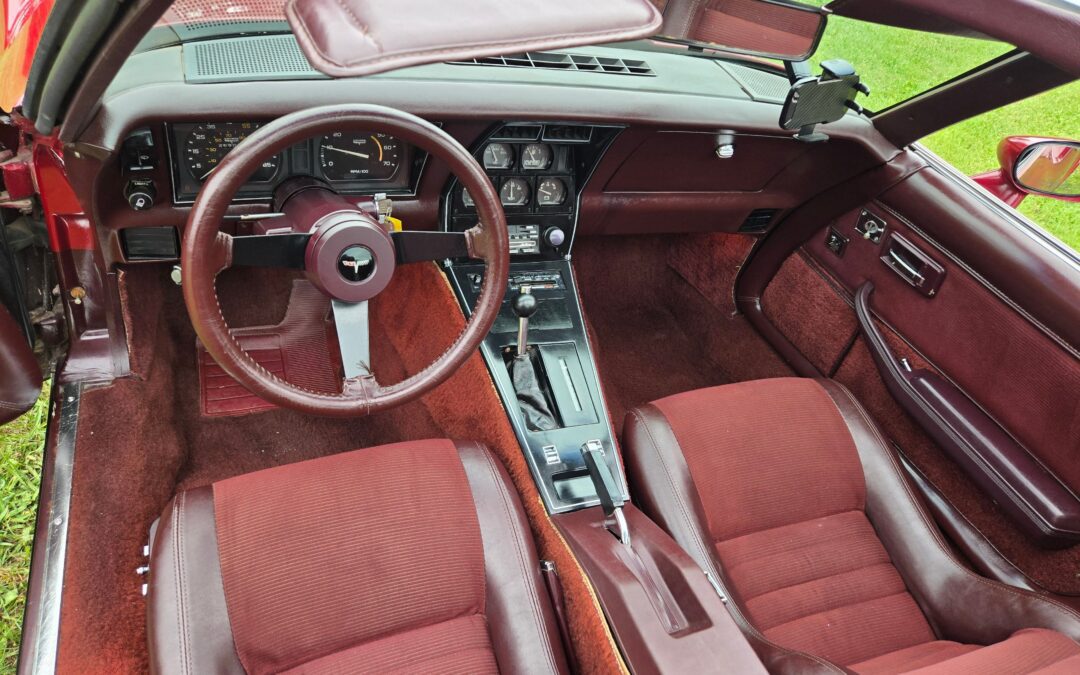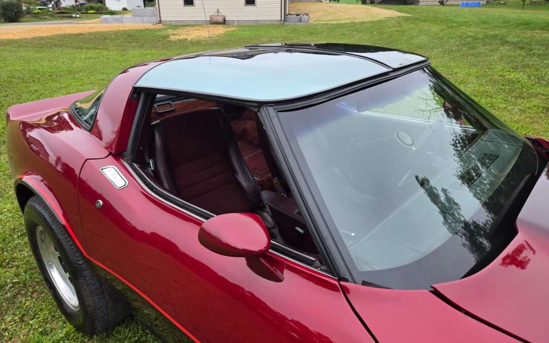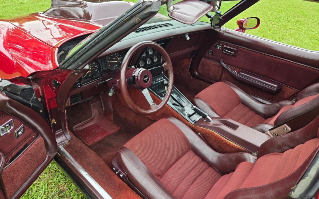 350 engine, 46,901 miles on the dash (mileage is exempt on the title), dark red cloth interior, power steering, power brakes, power windows, X – air conditioning, tilt and telescopic steering column, alloy wheels, power driver side seat, glass t tops, Gymkhana suspension, AM/FM/Cassette player, and much more.