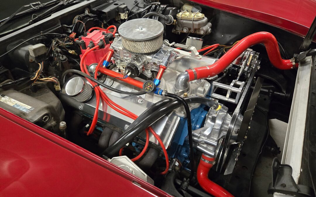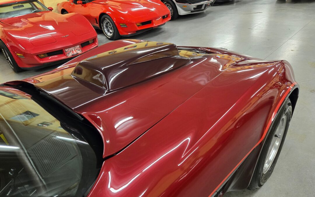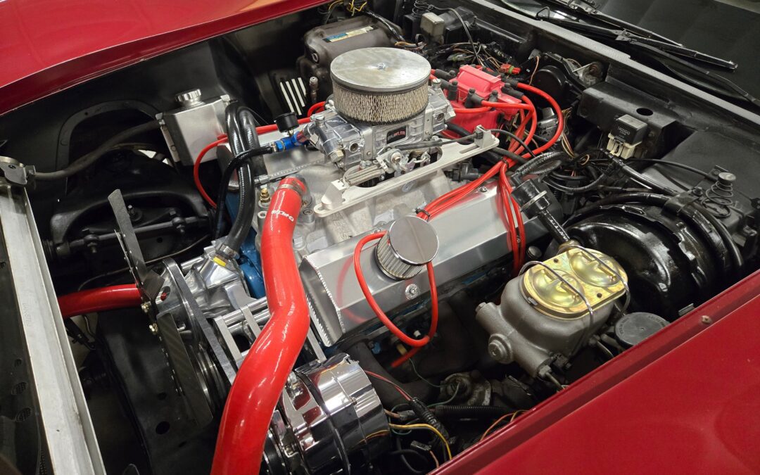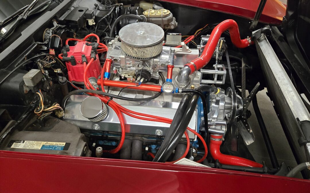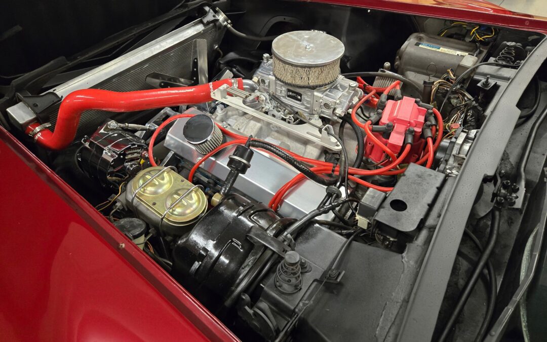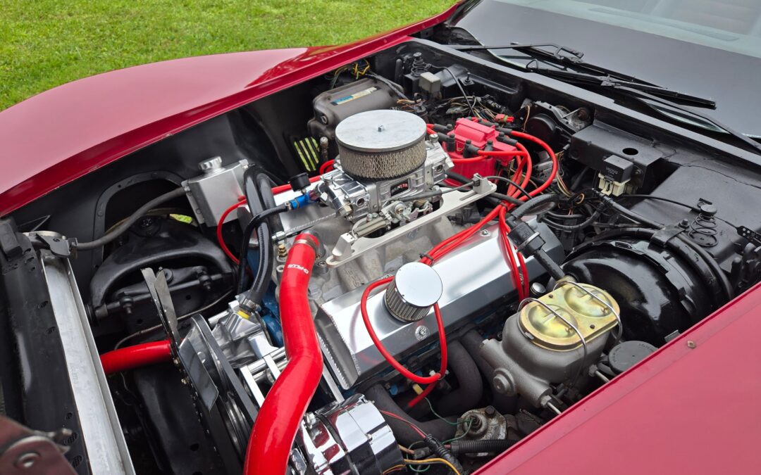 The previous owner repainted the corvette in base coat clear coat, he also installed headers, dual exhaust, Edelbrock aluminum intake, Brawler carburetor, and much more.